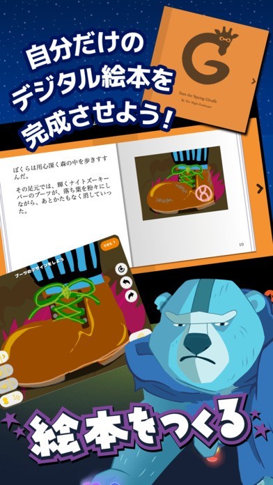 ▼ 物語に自分の絵を載せて絵本が作れる!