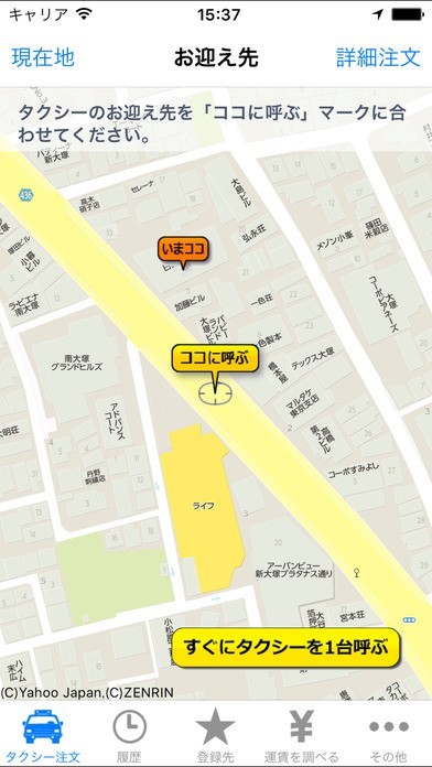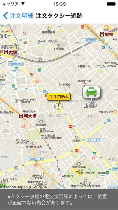 探します。本アプリで指定した場所が分かりにくい場合やタクシーを停車できない場