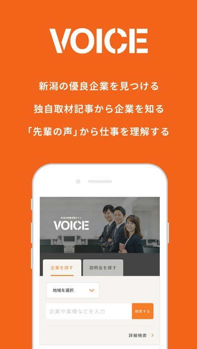 App Storeより引用新潟の就職情報アプリVOICEは、株式会社新潟日報社が運営する、新卒採用のための就職応援サービスです。