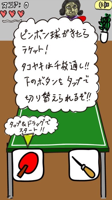 タコ焼き卓球は、ピンポン玉の卓球に混じって時々タコ焼きが飛んできます。ピンポン玉が来たらラケットをタップ、タコ焼きが来たら千枚通しをタップするので、反射神経が鍛えられます。大技機能があり、タコ焼きスマッシュのカットインが入り大技を繰り出してきます。ピンポン玉は打ち返し、タコ焼きは串刺しにしていくので見ていて面白く、笑顔になります。卓球初心者でも楽しめます。暇つぶしになり、笑いありの楽しい気持ちにさせてくれます。 ラリーは、1つのピンポン玉から始まり、進んでいくと2個3個と玉が増えていくのがポイントです。急いで打ち返していくのがストレス解消になり、遊んだ後はすっきりとします。