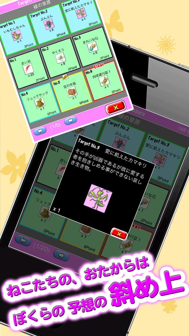 お宝を集めてポイントをためて、お部屋を増やしたり模様替えしたり、猫を増やしたり!!