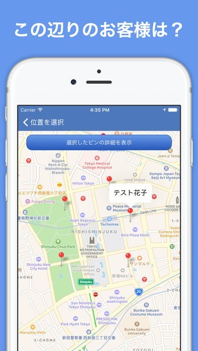 登録しておいた顧客情報からワンタッチでアクションを起こすことができます。電話番語をタッチすればすぐに電話をかけられ、住所をタッチすれば地図を開くことができます。