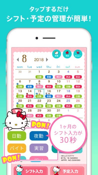職場のシフトを管理するだけでなくプライベートでの予定やその日にあった事などをスタンプで記録してカレンダーで見ることができるのでひと月にどの位の頻度なのかもひと目でわかるので便利に使えます。