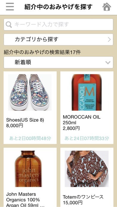 トラベラーによる出品商品が勢揃い!気になる商品はタップするだけで詳細画面を表示!