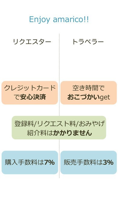 「amarico-あなたの欲しいモノを旅行者にお願い」スペック・仕様