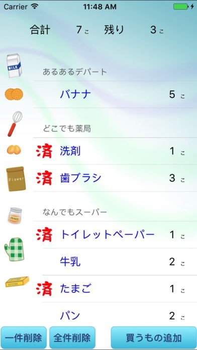 このアプリは、どの店で、何を、いくつ買うかを、簡単かつスピーディに入力でき、お店では、買い物かごに入れるのと同時に、ワンタップで購入済みマークをつけることができる優れものです。