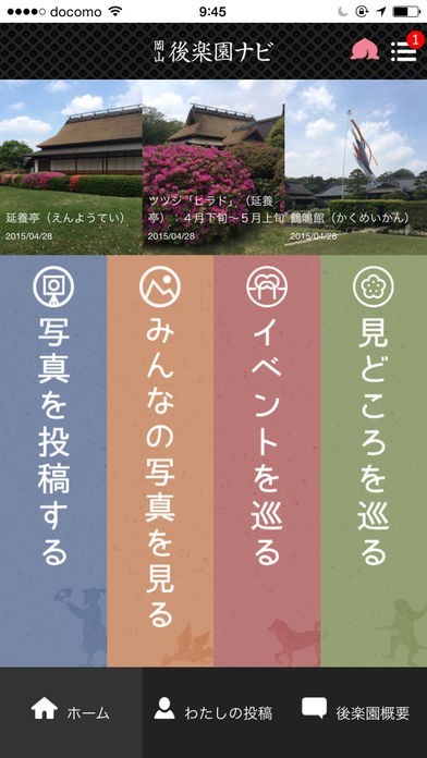 岡山後楽園の四季折々の美しい景観を写真におさめて投稿できます。