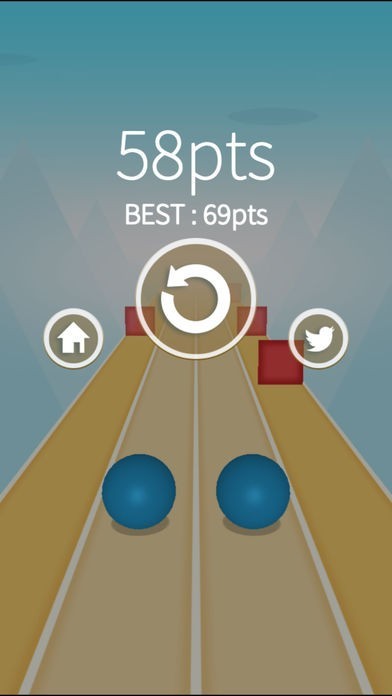 画面をタップすることによってボールの進むコースが変化します。2種類のボールは鏡のような関係で動きを共にしているため上手に頭を使いながらブロックにぶつからないコースを見つけましょう。