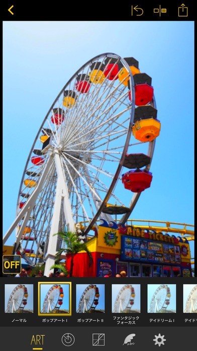 表現の世界を広げることができるアートフィルター。全28種類のフィルター(タイプ含む)と8種類のエフェクトを組み合わせることができます。