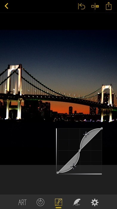 画面に表示されるトーンカーブにより、従来の露出補正では不可能なハイライト部、シャドウ部のディテール調整を-7~+7段階で簡単に行えます。