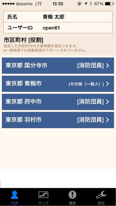 消防団の所属地域、お住まいの市区町村を登録するだけで、すぐにお使いいただけます。