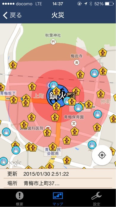 App Storeより引用「Fire corps め組」は、火災発生、安否確認の災害情報アプリです。
