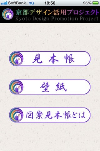 京都デザイン活用プロジェクト(www.kyotodesign.jp)に登録されたデザイン画像を検索、表示することができます。また、お気に入りに登録して見本帳-