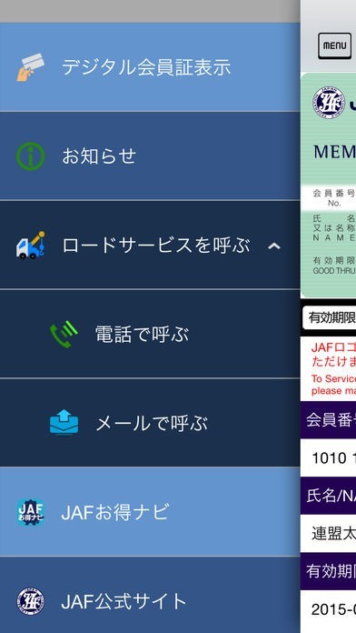 JAF会員カードを車に置いて無くて、いざというとき困ったときがあります。スマホなら常に持っているので会員証代わりにインストールしてます