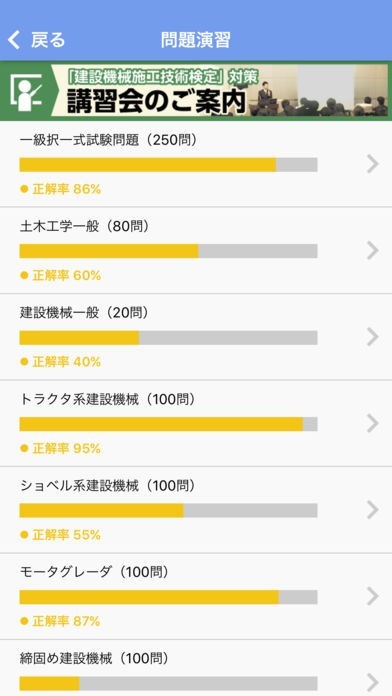 「平成30年度版建設機械施工技術検定問題集」には1000問を超える過去問が収録されており、実際に本番の試験で出題されたことのある問題を使って練習が行えます。また、間違った問題や知識があやふやな問題については何度も繰り返し解くことができます。質の良い問題がそろっているので試験に合格した多くの人が活用しています。