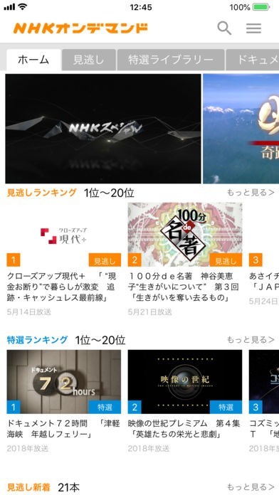 NHKが放送したテレビ番組をスマートフォンで再生することができるようになるアプリが「NHKオンデマンド」です。NHK総合だけでなくEテレやBSなどの番組も対象となっていて、月々500から600本程度の番組を配信しているだけでなく、見逃してしまった番組は放送を終了した翌日から2週間程度視聴することができるようになっています。特選ライブラリーでは厳選されたドキュメンタリーや大河ドラマなど約5000本を視聴することが可能となっています。