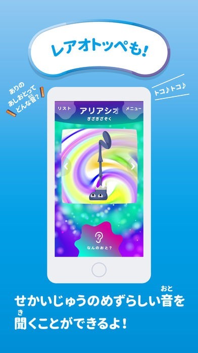 オトッペずかんのイチオシポトは、身の回りにあるなにげない音にも耳を傾けたりするきっかけづくりといろいろな音にふれることで「聴察力」を育め、親子で楽しめるアプリです。番組にでてくるオトッペをキャッチすることもできより番組もアプリも楽しむことができるようになってます。音に興味をもち始めた小さなお子様でも充分に遊べるようになってるのでおすすめです。また、オトッペをたくさんずかんにいれると、世界中の音から生まれたレアオトッペがあらわれ、より楽しくオトッペをキャッチできるようになってます。課金などもないので自由に好きなだけ遊ぶことができるようになってます。