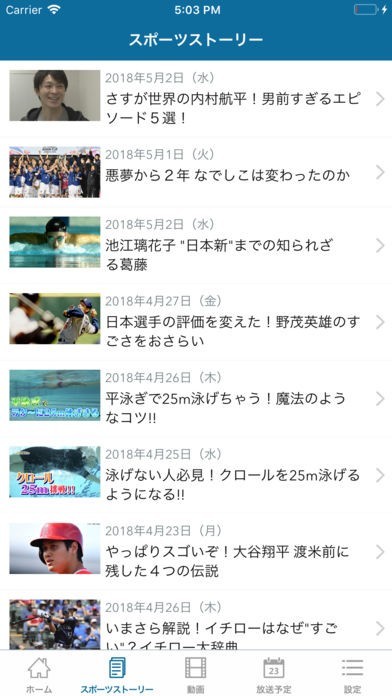 NHKが公式に配信を行っている「NHKスポーツ」では、NHKによるスポーツニュースなどをスマートフォンで閲覧することができます。テレビでも放送された映像の一部を、ハイライト動画としても配信。番組を見逃した時にも安心です。スポーツに関連した番組の案内など、NHKでさらにスポーツを堪能できる機能も揃っています。