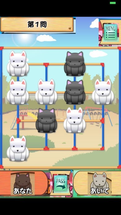 黒猫と白犬デザインで四路盤の詰碁ができるアプリ