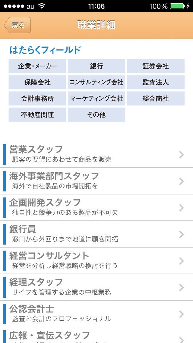 App Storeより引用高校生に職業について深く理解いただくためのアプリです。「20の業界カテゴリー・390の職業」「416の資格」また職業に就くにための「なるには?」を紹介。将来の職業選択に役立ちます。さらには自分に向いている職業や適性もチェックできます。