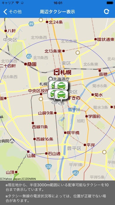北海道の札幌市、北広島市、苫小牧市、石狩市の一部地域でSKタクシーが呼び出せるタクシーアプリ