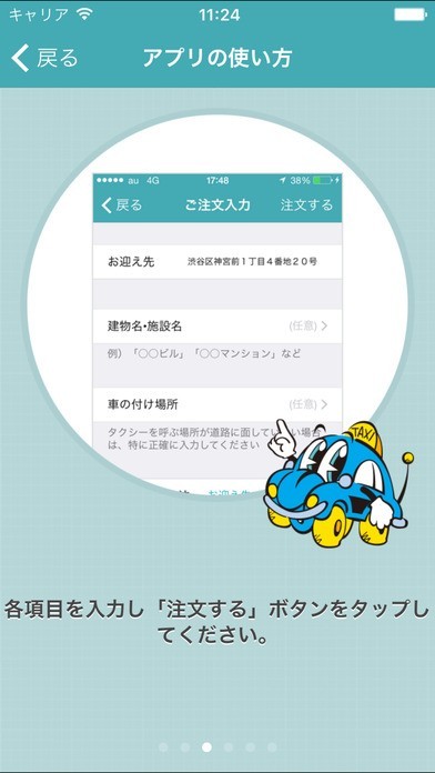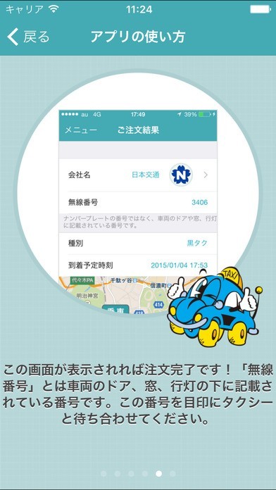 ※このアプリからのご注文は電話と同じく各会社規定の迎車料金を加算させていただきます。