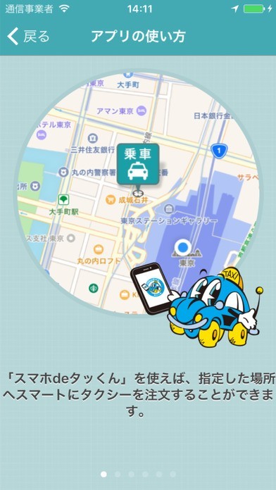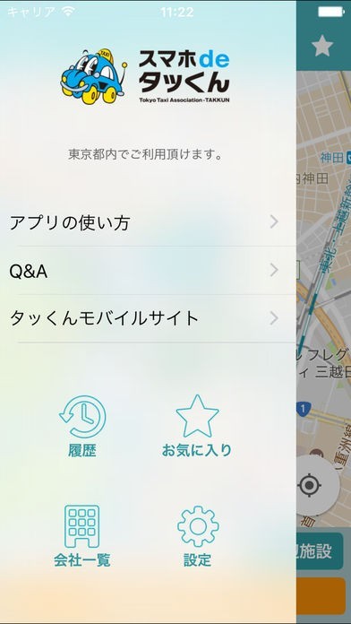 東京のタクシー「スマホdeタッくん」のスクリーンショット