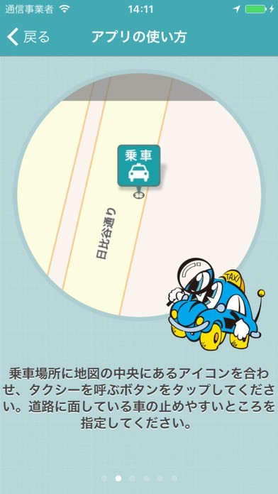 1.オペレーターと会話することなく、タクシーのお迎え先を地図上にGPS機能で簡単確定。オペレーターにお迎え先の住所や建物名など面倒な説明をする手間が一切かかりません。