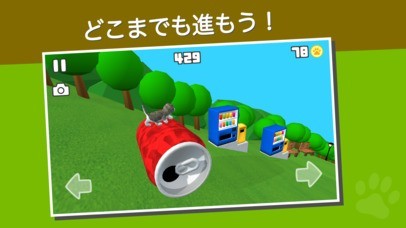 キュートなネコと森や道路を冒険できる無料ゲーム「ネコのっちゃった」 おさんぽ程度の冒険ではなく移動手段として丸太や空き缶を使用し、どんどんと先へ向かって進んでいきます。さらにバランスをとって落ちないようにするので、操作が上達することにより進みやすくなる点もポイントです。操作は画面左右タップのシンプル設計となっているため、小さな子供にも安心して遊ばせることができます。肉球マークのコインも重要な要素の一つで、一定数を集めて新しい乗り物のゲットも可能です。