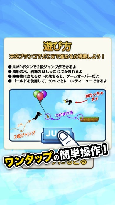 指先1つで手軽に遊べる!天空をジャンプし続けてハイスコアを目指そう!