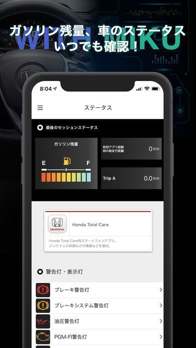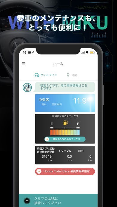 S660に乗っていなくても、一度S660に乗れば気になった時にアプリを開けば、すぐにステータスを確認できて安心です。