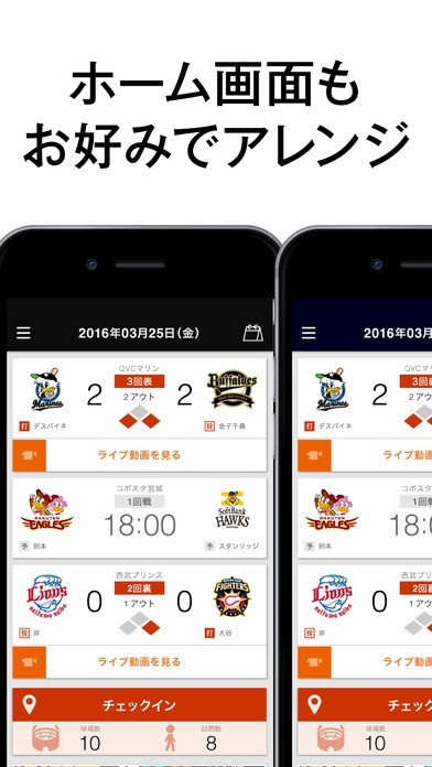 そして、みなさまのプロ野球観戦スタイルにあわせてアプリ画面をカスタマイズできるようにしました。