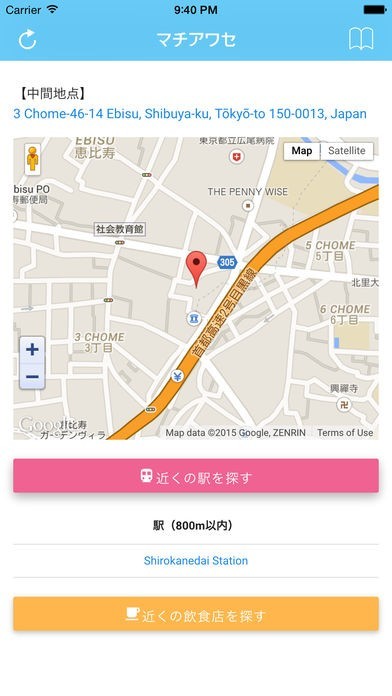 このアプリでは自分がいる場所と相手の場所を入力するか、位置情報から取得することによって二人のちょうど中間の場所を示してくれます。 よって、そのままその場所を待ち合わせ場所にすることも出来ますが、わかりにくい場所の場合はそこから近い駅を探してそこに指定するといったことも出来ます。 他にも最寄りの飲食店を探し出すことも出来るので、喫茶店などを待ち合わせ場所に指定するといったことも行えます。 そして何より素晴らしいのが両者に不満が出ないということで、不公平感を感じることがないので、揉める心配が無くなります。 他にも3人での場所を決めたりといったことも出来るので、場面に応じていろいろと応用して使うことが可能です。