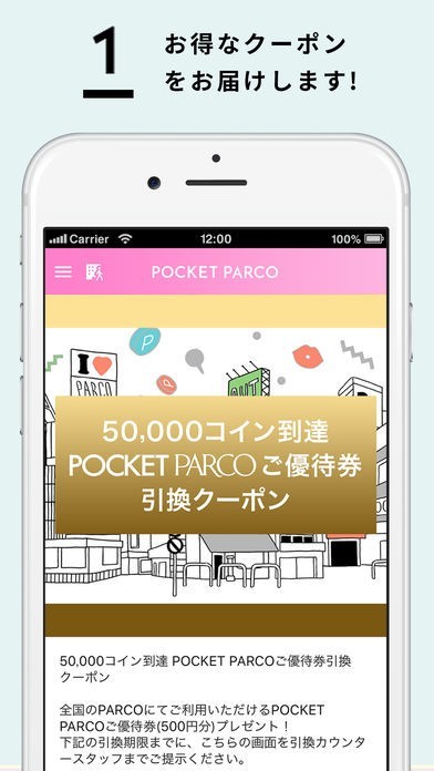パルコで使えるクーポンを取得したり、お店の情報を知ることができます。