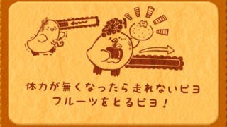 はしってひよこまみれは、ひよこがひよこを助けるために集めていくゲームです。お菓子の島で、お菓子に夢中になって迷子になったひよこたちを探していきますボカンは敵のヒヨコになります。 タッチでひよこがジャンプします。そのまま押し続けるとはばたきます。障害物が出てくるので飛び越えるときや、敵を踏み潰して倒すときに、タイミングを合わせて飛びます。体力を消耗するので、フルーツを食べ体力を回復させます。無敵機能があります。キャンディを食べると無敵になったり、2段ジャンプをしてパワーアップをします。タップと長押し操作で簡単にでき、親子で楽しめます。