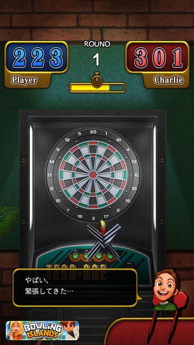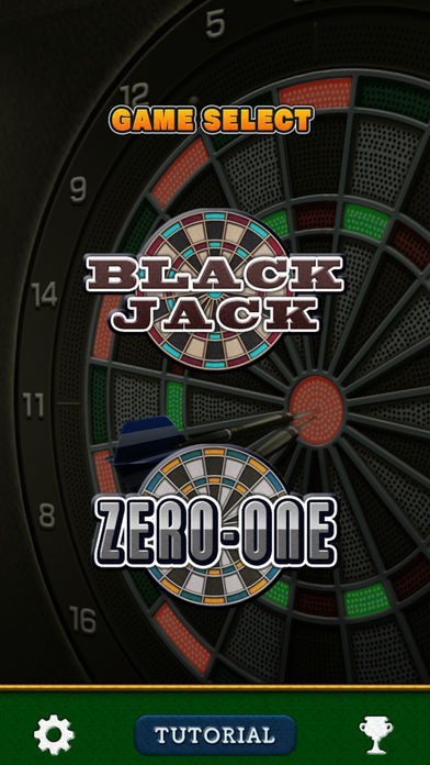 本ゲームには、ダーツゲームの定番「ゼロワン」とオリジナルゲーム「BLACKJACK」が入っています。