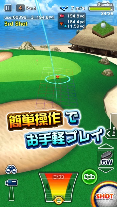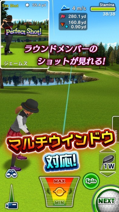 ラウンドメンバーのナイスショットがマルチウインドに映し出され一緒にラウンドしているかの様な臨場感が感じられるゴルフゲームです。