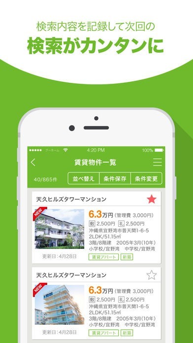 App Storeより引用沖縄県内最大級の不動産情報グーホームでは、アパートやマンション、一戸建てなど住居用物件はもちろん、店舗・事務所、倉庫など事業用物件も探せます。また、借りたい物件も買いたい物件もバス・トイレ別や敷金・礼金なし、海が見えるなど人気の条件を始め、即日入居、駐車場一台無料、南向きなどのこだわり条件を豊富にご用意しているので、あなたの希望に合うお部屋、住まい探しをサポートします。