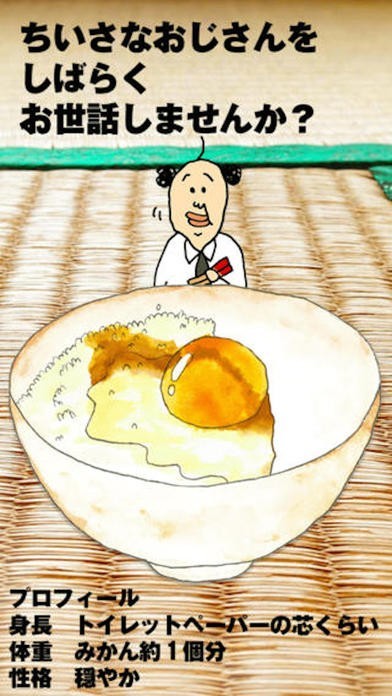 小さくなってしまった身寄りのないおじさんをお世話する育成シミュレーションゲームアプリが「ちいさなおじさん たいへん恐縮ですが、しばらくの間お世話になります。」です。哀愁あふれるおじさんにご飯を上げたり、お風呂に入れたりしながら育てていくゲームとなっていて、ゆるくてちょっと気持ちが悪いおじさんの友達たちがやってくるのを楽しんだり、おじさんや友達など色々なところをタップしたりすることで出現する妖精を観察したりすることができます。