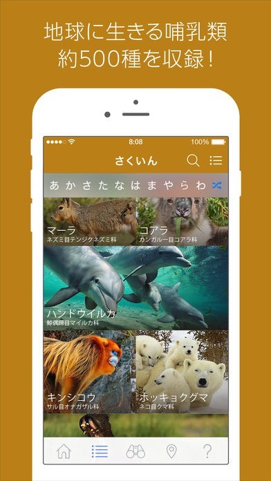 美麗な写真とともに動物の生態を知ることができる図鑑アプリ「美しい写真図鑑 - せかいの動物 - プチペディア」 600種類の哺乳類を掲載し、クマやイルカ、コアラなどの動物達の姿を楽しむことができます。 「さくいん」機能を利用すれば動物の科目だけではなく特性からの検索も行える他、検索結果では動物写真を指先で拡大して見ることもできます。 毎日違う動物をピックアップする「きょうの動物」では、今まで知らなかった動物達と出会うこともできるでしょう。