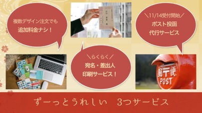 年賀はがきのプリント注文が行えるようになっています。また背景やデザイン等を編集する事が可能で、テーマ別にテンプレートを表示出来るのも魅力でしょう。ポスト投函代行に対応しているのもメリットです。