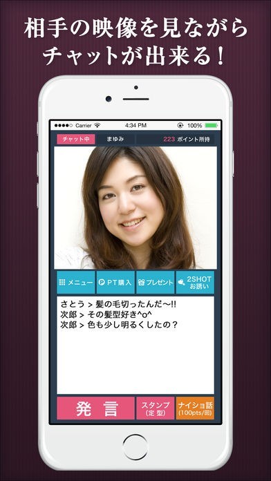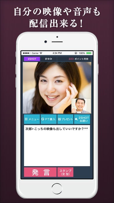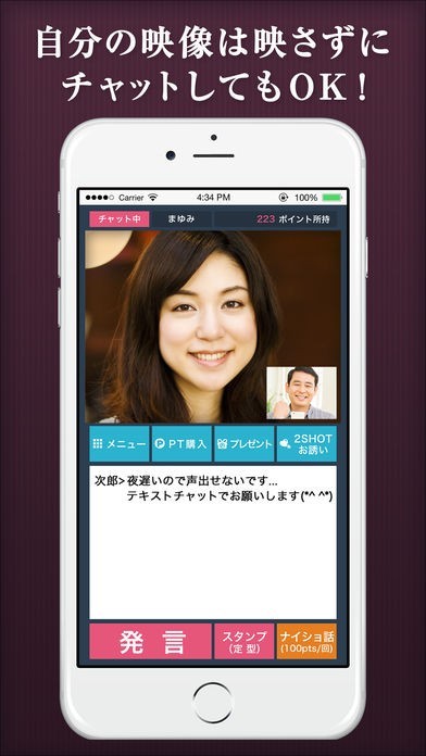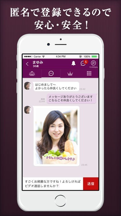 お互いの顔や表情をみながら、メッセージを交わせます。感情がダイレクトに伝わりますし、年齢や写真で騙される心配もありません。恥ずかしい場合は、文字だけで交流することも可能です。