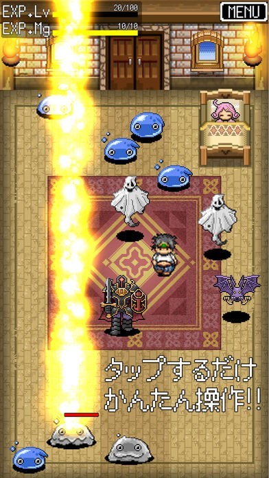 サクサク遊べる簡単操作RPG!放置している間に集まるモンスターをタップで倒していきましょう!暇つぶしにも最適です!