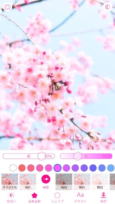 わたあめカメラは、撮影した写真がわたあめのような、ふわふわとした仕上がりになります。写真をかわいくしたいときに、ふわふわフィルタを使用すると優しい雰囲気になり、好みに合わせて調節が可能です。