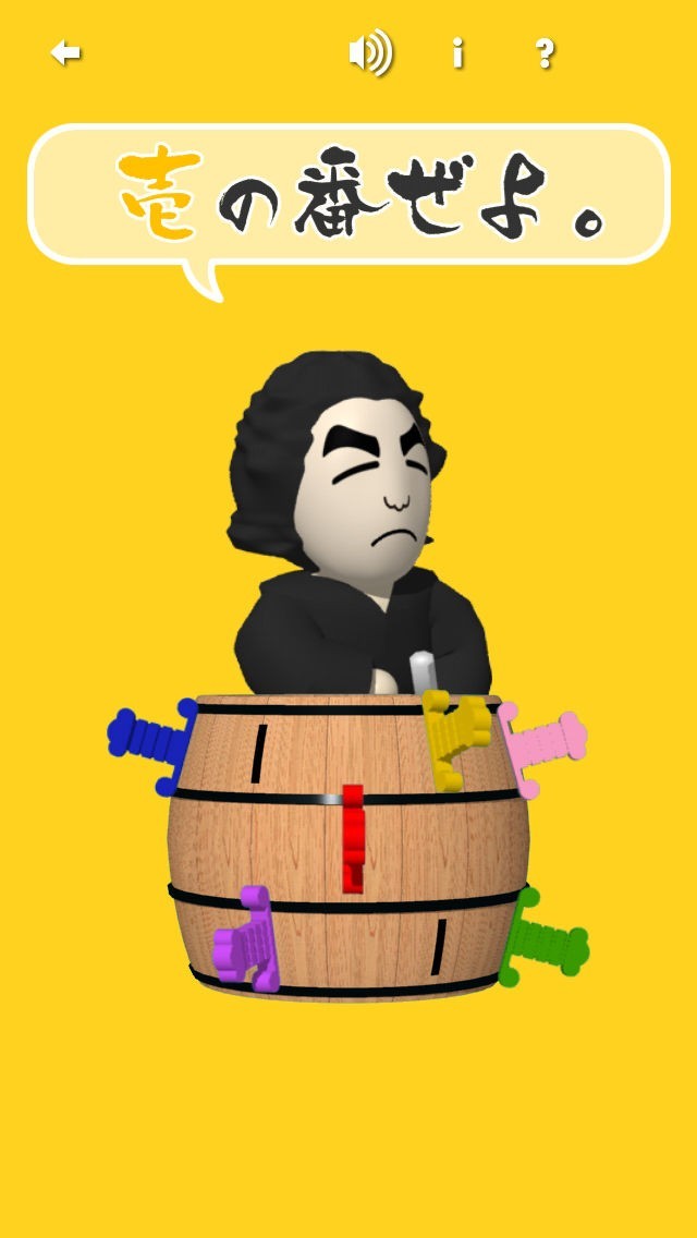 App Storeより引用樽に剣を刺すと、龍馬が飛び出すという、