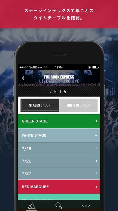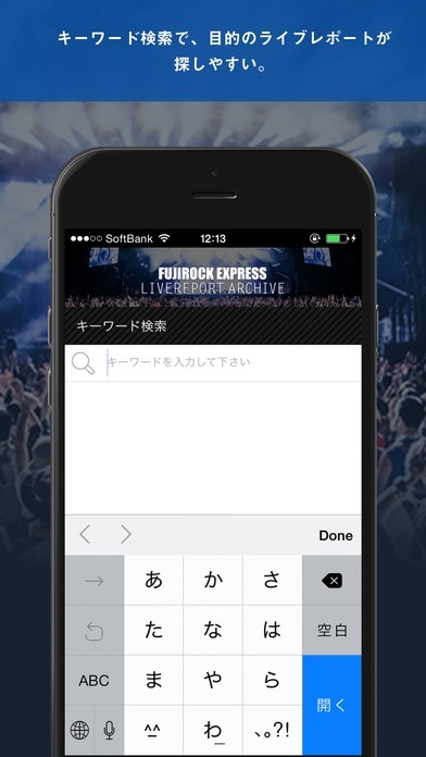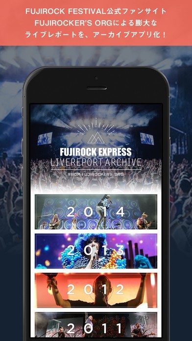 フジロックフェスティバル公式ファンサイト「フジロッカーズオルグ」のアーカイブアプリが登場! 「FUJIROCK EXPRESS LIVEREPORT ARCHIVE」では、これまで重ねてきた膨大な情報やレポートを配信しています。 年別インデックスにより分けられたステージレポートは圧巻。 お気に入りのアーティストについてのレポートも、手軽に閲覧できるのが嬉しいポイントとなっています。 また、キーワード検索機能を用意しており、お目当てのライブも素早く検索が行えます。
