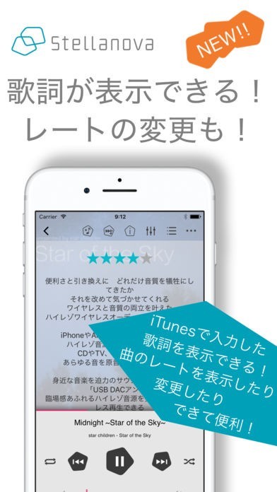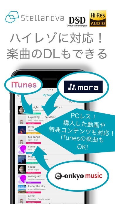 「Wireless Hi-Res Player ~Stellanova~」は、スマートフォンでハイレゾやAACなど高音質な音楽を楽しむことができるアプリとなっています。