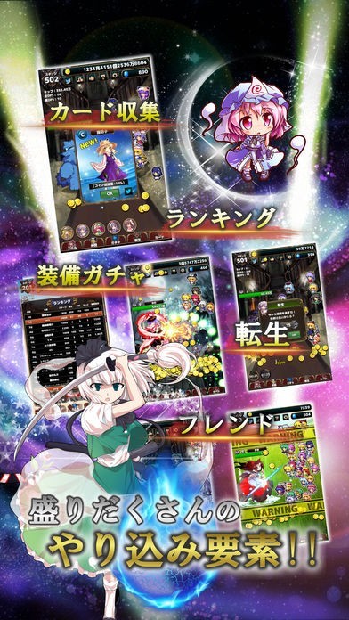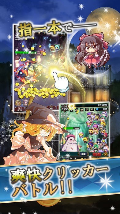 人気STGゲーム東方シリーズのキャラクターが登場するクリッカーゲームです。タップだけで誰でも遊べるので、シューティングだから手が出せなかったという人も遊んでみましょう。