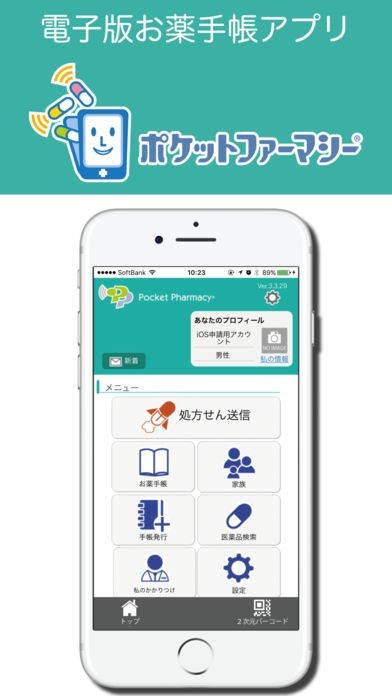スマートフォンが調剤薬局で提示すると薬代の安くなるお薬手帳として使える