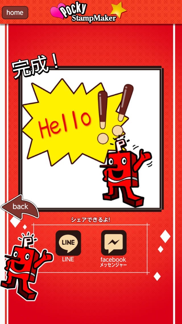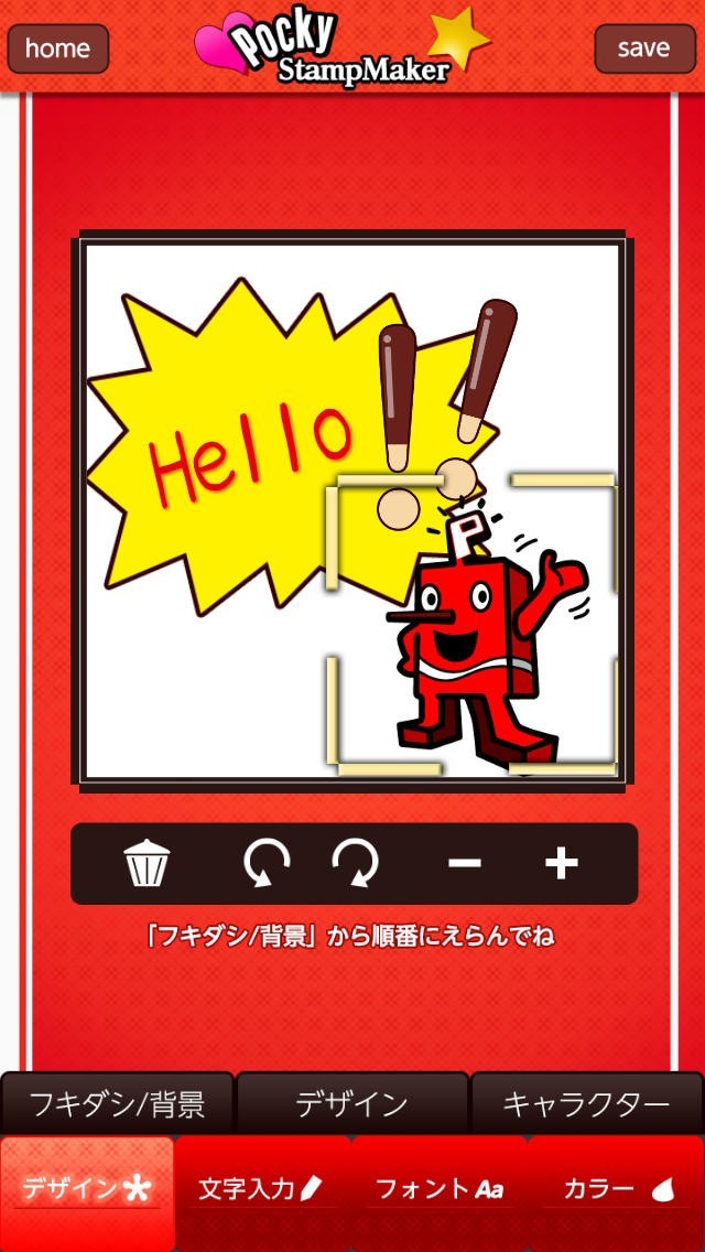 メッセージやデザインを決めてポッキーのオリジナルスタンプが作れる!